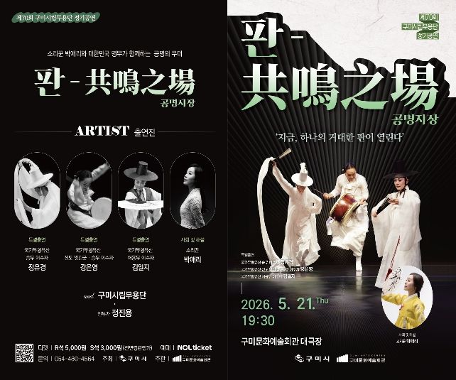 구미시 관계자는 “이번 공연은 전통예술의 가치와 현대적 해석을 함께 경험할 수 있는 자리”라며 “시민들이 수준 높은 공연을 가까이에서 즐길 수 있도록 준비한 만큼 많은 관심을 바란다”고 밝혔다.