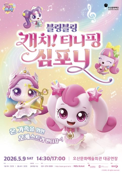 한방통신사 신유철기자 기자 | 오산문화재단은 어린이날을 맞아 온 가족이 함께 즐길 수 있는 오케스트라 공연 ‘블링블링 캐치! 티니핑 심포니’를 선보인다고 밝혔다. 이번 공연은 인기 애니메이션 ‘캐치! 티니핑’ 시리즈의 OST를 오케스트라 라이브로 감상할 수 있는 무대로, 어린이뿐 아니라 가족 단위 관람객들에게 특별한 문화 경험을 제공할 예정이다.