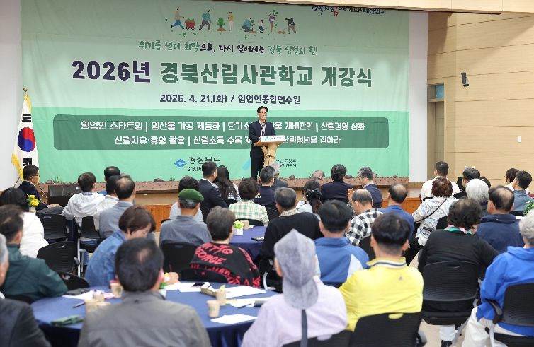 한방통신사 신유철기자 기자 | 경상북도는 4월 21일, 산림조합중앙회 임업인종합연수원에서 교육생 등 160명이 참석한 가운데 ‘2026년 경북산림사관학교 개강식’을 개최했다.