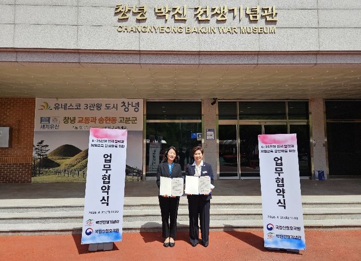 한방통신사 신유철기자 기자 | 창녕군 박진전쟁기념관은 21일, 국립산청호국원(원장 김경나)과 업무협약을 체결하고, 6‧25전쟁의 역사적 가치 계승과 호국보훈 문화 확산을 위한 전시 및 교육 협력 체계를 구축했다.