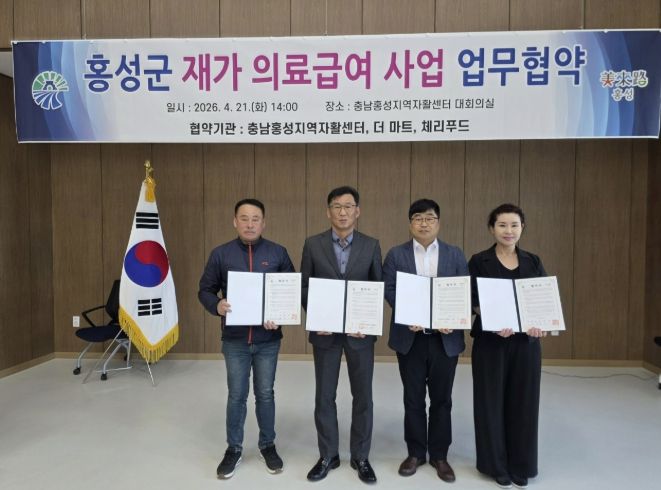 한방통신사 신태공 기자 | 홍성군은 지난 21일 재가 의료급여 대상자의 일상생활 지원 강화를 위해 ▲충남홍성지역자활센터 ▲더마트 ▲체리푸드 등 3개 기관과 업무협약을 체결하고, 식사·이동·주거 개선 등 생활밀착형 서비스 제공 체계를 한층 확대했다.