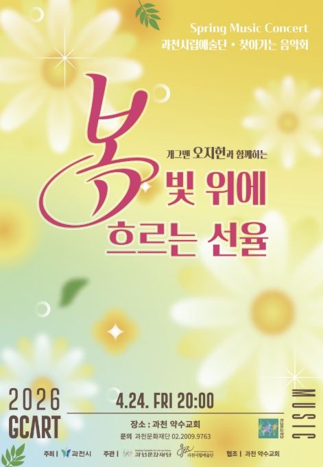 한편, ‘봄빛 위에 흐르는 선율’은 사전 예약 없이 누구나 무료로 관람할 수 있는 열린 공연으로, 과천의 봄밤을 아름다운 선율로 물들일 것으로 기대된다.