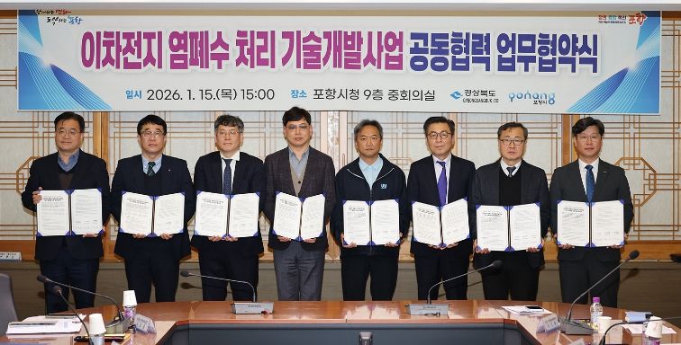 경북도는 기후에너지환경부가 주관하는 2026년도 ‘이차전지 염폐수 처리 기술개발사업’ 신규 과제 공모에서, 지난 1월 기술개발 지원을 위해 경북도․포항시가 업무협약을 맺은 기업 중 ㈜BIT범우 등 5개 주관기업들이 참여한 5개 과제 모두 최종 선정됐다.