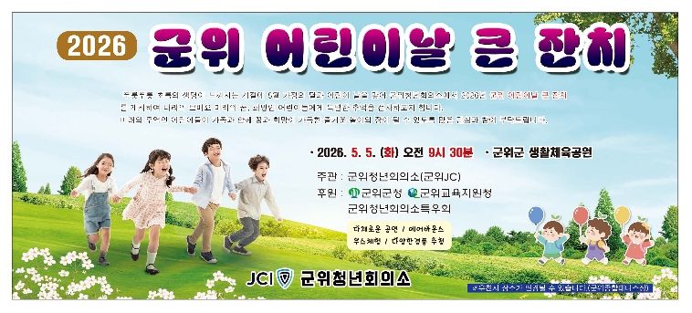 이번 행사는 2026년 5월 5일 오전 9시 30분부터 군위생활체육공원에서 열리며, 군위청년회의소(회장 김주환)가 주관한다. 행사에서는 아동 권리헌장 낭독과 모범어린이 시상을 시작으로, 18종의 체험부스 운영과 기념 공연이 이어질 예정으로 어린이와 온 가족이 함께 즐길 수 있는 다채로운 프로그램이 마련된다.