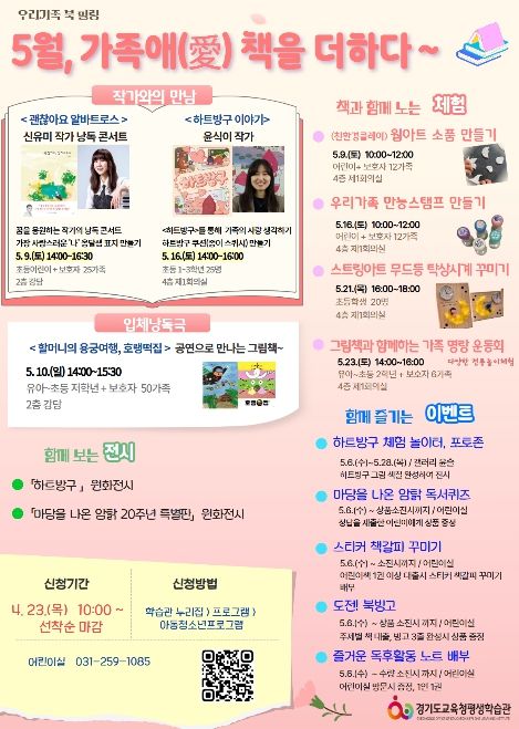 류영신 경기도교육청평생학습관장은 䄝월 가정의 달을 맞아 가족 간 세대 간 책과 함께 공감하고 즐겁게 소통하는 한 달이 됐으면 한다”고 말했다.