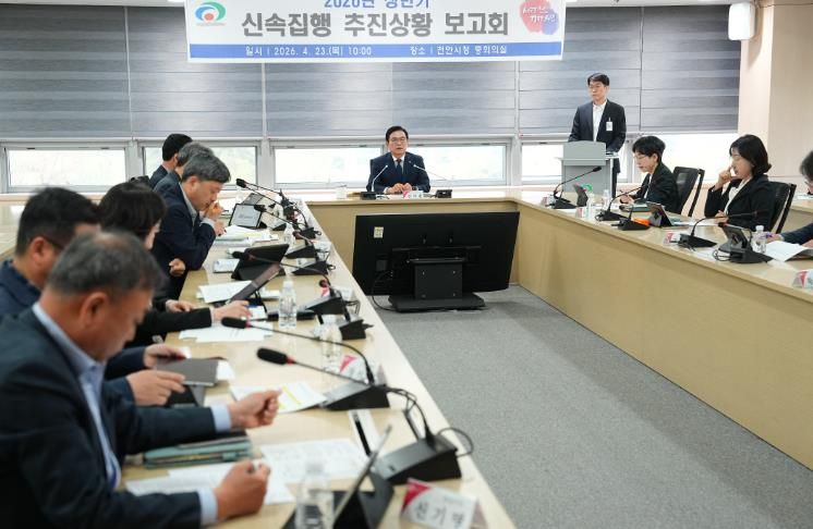 천안시는 23일 시청 중회의실에서 김석필 천안시장 권한대행 부시장 주재로 ‘2026년 상반기 신속집행 추진상황 보고회’를 열고 주요 사업 부서의 집행 현황을 점검했다.