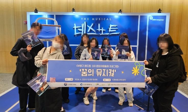 한방통신사 신유철기자 기자 | 부평구학교밖청소년지원센터는 지난 22일 학교 밖 청소년을 대상으로 3차 문화체험활동 프로그램 ‘꿈의 뮤지컬’을 진행했다고 밝혔다.