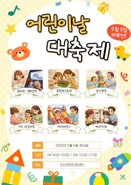 한방통신사 신유철기자 기자 | 오산시가 운영하는 오산아이드림센터가 어린이날을 맞아 온 가족이 함께 즐길 수 있는 특별 체험행사를 마련한다.