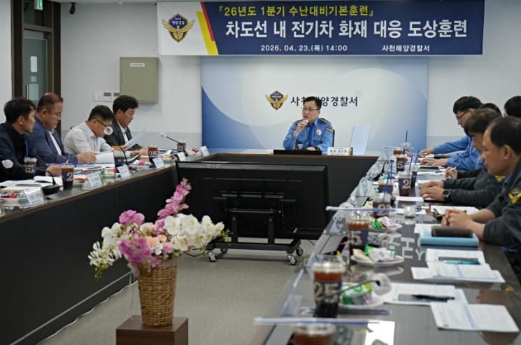 이날 훈련은 ▲ 도선 내 전기차 화재 사고에 따른 각 기관별 임무 ▲ 기관·단체별 예방 대책 및 대응 토의 ▲ 수난구호협력기관 간 재난 상황 시 협력 방안 논의 등으로 토의형 훈련을 진행했다.