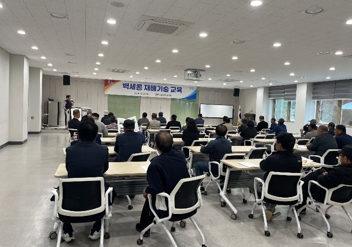 이번 교육은 정종일 경상국립대 교수를 강사로 초청해 정 교수가 직접 개발한 ‘백세콩’의 재배 기술과 관리 요령을 강의했다. 교육 내용은 ▲백세콩의 품종 특성 ▲재배 기술 및 토양관리 ▲병해충 방제 ▲수확 및 저장 관리 등 현장에서 바로 적용이 가능한 실용 기술 위주로 강의해 실질적인 도움이 됐다.