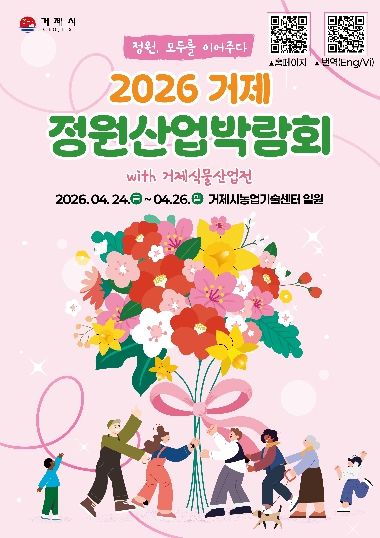 한편, '2026 거제 정원산업박람회 with 거제식물산업전'은‘정원, 모두를 이어주다’를 주제로 4월 24일부터 26일까지 3일간 농업기술센터 잔디광장 일원에서 정원전시, 산업전, 체험 프로그램 등 다양한 콘텐츠로 시민과 관광객을 맞이할 예정이다.