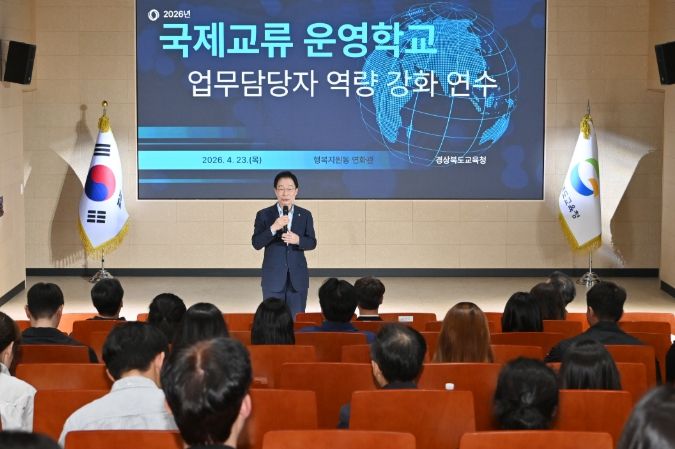한방통신사 신유철기자 기자 | 경북교육청은 23일 본청 행복지원동 연화관에서 도내 국제교류 운영교 업무 담당자와 관리자 등 150여 명이 참석한 가운데 ‘2026년 국제교류 운영학교 업무 담당자 역량 강화 연수’를 개최했다고 밝혔다.