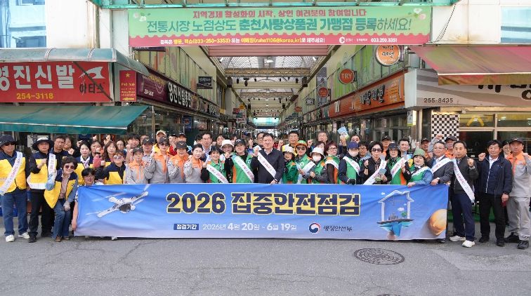 한방통신사 양호선기자 기자 | 춘천시와 춘천소방서, 한국전기안전공사, 강원도시가스 등 관계기관이 23일 중앙시장 일원에서 ‘2026년 집중안전점검 및 안전점검의 날’ 합동 캠페인을 실시했다.