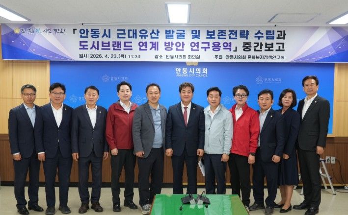 한방통신사 신유철기자 기자 | 안동시의회 문화복지정책연구회는 23일 안동시의회 회의실에서‘안동시 근대유산 발굴 및 보존 전략 수립과 도시브랜드 연계 방안 연구용역’중간보고회를 개최하고, 연구 추진 현황을 점검하는 한편 향후 정책 방향에 대해 논의했다.