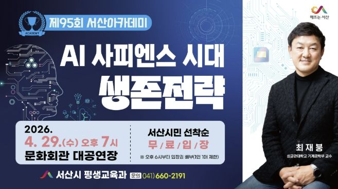 이번 서산아카데미는 ‘AI 사피엔스 시대, 생존전략’을 주제로 진행된다.
