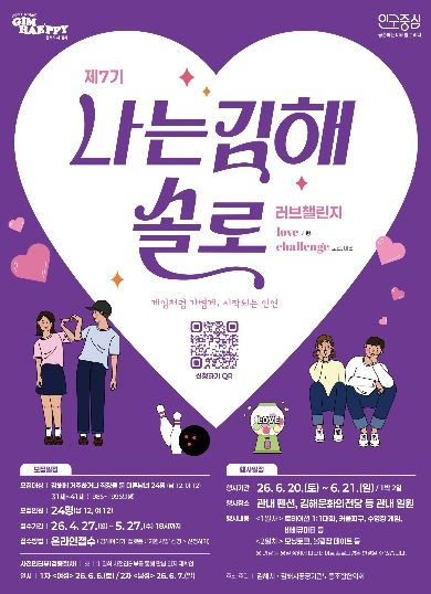 한방통신사 신유철기자 기자 | 김해시는 오는 6월 20일부터 21일까지 1박 2일 일정으로 관내 펜션과 김해문화의전당 등에서 진행하는‘제7기 나는 김해솔로-러브챌린지’참가자 24명(남·여 각 12명)을 모집한다고 24일 밝혔다.
