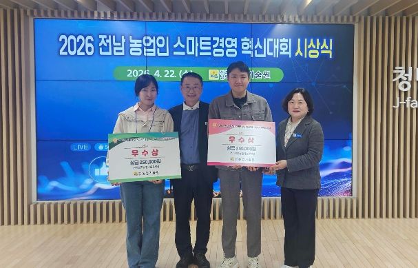 한방통신사 신다은기자 기자 | 영광군은 지난 4월 22일 전라남도농업기술원 창농타운에서 열린 ‘2026년 전남 농업인 스마트경영 혁신대회’에서 관내 청년농업인 2명이 우수상을 수상했다고 밝혔다.