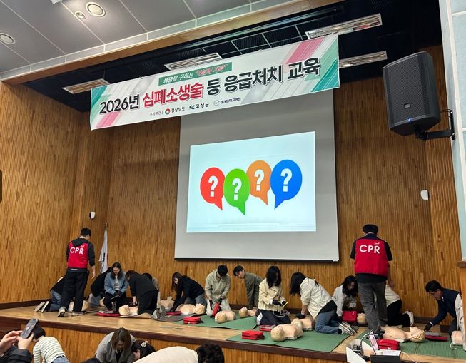 한방통신사 신유철기자 기자 | 고성군은 4월 23일부터 24일까지 이틀간 고성군농업기술센터 2층 친환경농업연구소 강당에서 법정의무교육대상자 등 100여 명을 대상으로 ‘2026년 심폐소생술 등 응급처치 교육’을 실시했다.