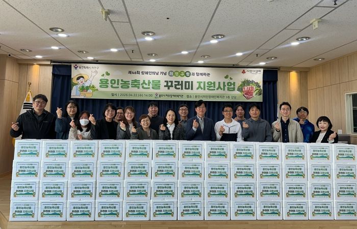 처인구는 22일 제46회 장애인의 날을 기념해 지역사회 취약계층 장애인을 위한 ‘농축산물 꾸러미’ 100개를 전달했다. 이날 행사는 장애인의 날의 의미를 되새기고 지역사회 내 장애인 복지에 대한 관심을 높이고자 마련됐다. 꾸러미는 구가 용인시처인장애인복지관에 배분한 지역 내 이웃돕기 예치금을 사용해 마련했다. 용인시처인장애인복지관은 예치금을 사용해 채소와 육류 등 지역 농축산물로 이뤄진 농축산물 꾸러미 100개를 제작했다. 이날 준비한 농축산물 꾸러미는 복지관을 통해 지역 내 장애인 시설과 장애인 가정에 전달될 예정이다.