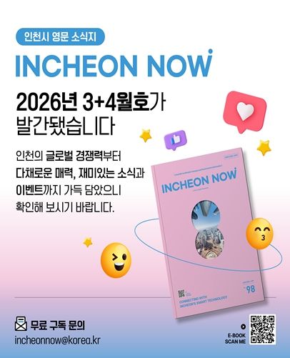 한방통신사 신유철기자 기자 | 인천광역시는 도시의 혁신적인 정책과 차별화된 매력을 전 세계에 소개하는 영문소식지 '인천나우(Incheon Now)' 3·4월호(Vol. 98)를 발간했다고 밝혔다.