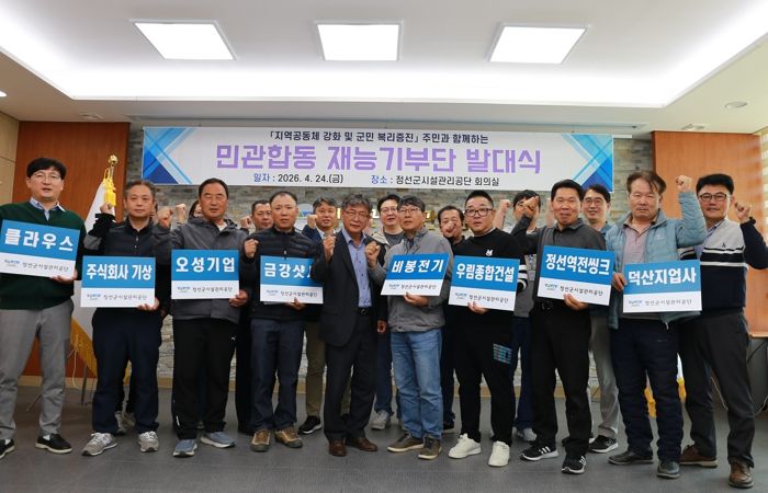 정선군시설관리공단 이사장은 “이번 발대식을 계기로 재능기부단의 소속감과 자긍심을 높이고, 지역사회에 실질적인 도움이 되는 봉사활동을 확대해 나가겠다”며 “앞으로도 지역 업체와의 협력을 통해 군민이 체감할 수 있는 복지 향상에 최선을 다하겠다”고 밝혔다.
