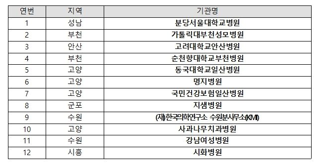 대표단에는 분당서울대학교병원, 가톨릭대학교부천성모병원, 고려대학교안산병원, 순천향대학교부천병원, 동국대학교일산병원, 명지병원, 국민건강보험일산병원, 지샘병원, (재)한국의학연구소(KMI) 수원분사무소, 사과나무치과병원, 강남여성병원, 시화병원 등 도내 의료기관 12개소가 참여했다.