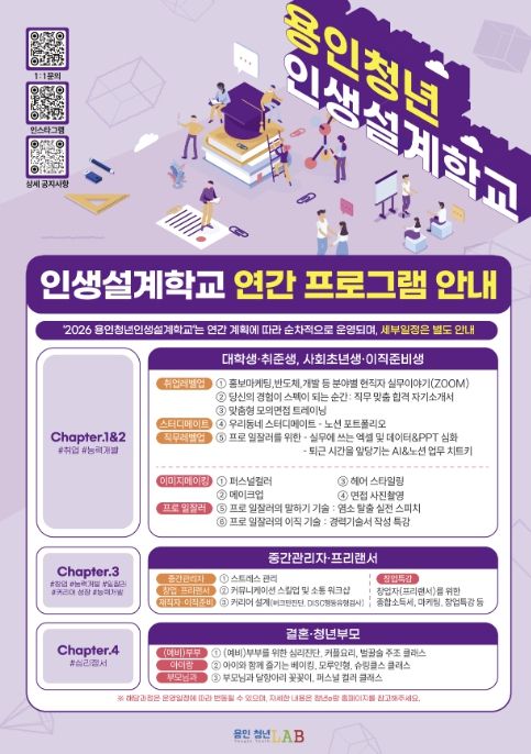 시 관계자는 “용인청년 인생설계학교는 청년의 특정 시기에 국한되지 않고 삶의 전반을 설계해 나가는 생애주기형 프로그램”이라며 “현재 다양한 단계의 교육이 운영되고 있는 만큼, 청년들이 각자의 단계에 맞는 과정을 통해 성장할 수 있도록 맞춤형 지원을 확대하겠다”고 했다.