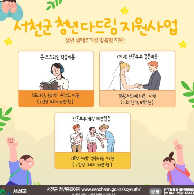 지원 분야는 ▲오프라인·온라인 개인학습비용 ▲예비·신혼부부 결혼비용 ▲신혼부부 HPV 예방접종 비용 등으로, 청년의 생애주기와 수요에 맞춘 맞춤형 지원을 제공한다.