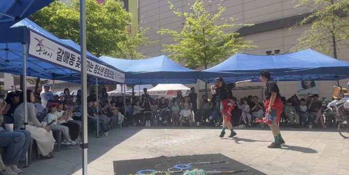 이날 선보인 ‘사운드서커스’는 버려지는 재활용품을 창의적인 악기로 다시 만든 새활용 음악 공연으로, 관객들에게 환경 보호의 중요성을 알리는 동시에 가족 단위 관람객들에게 큰 즐거움을 선사했다. 이를 통해 지역 공동체의 유대감을 높이는 계기가 됐다.