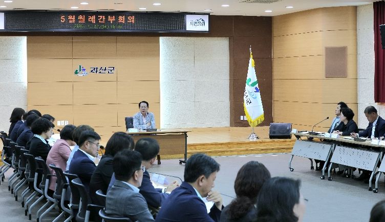 한방통신사 권영분기자 기자 | 송인헌 군수가 27일 군청 대회의실에서 열린 월례간부회의에서 추진중인 농어촌 기본소득 시범사업 추가 공모의 군정 현안으로 제시하고 철저한 준비를 주문했다.