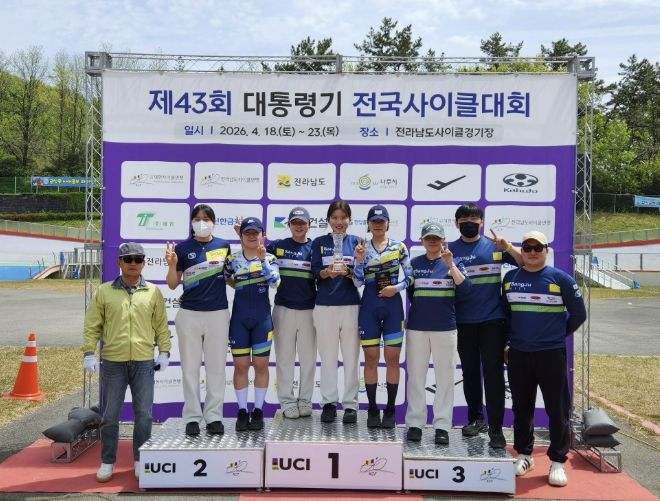 한방통신사 신유철기자 기자 | 상주시청 여자 사이클팀이 전남 나주시 일원에서 열린 ‘제43회 대통령기 전국사이클대회’에서 종합준우승과 함께 최우수지도자상(이형주 코치)을 차지했다.
