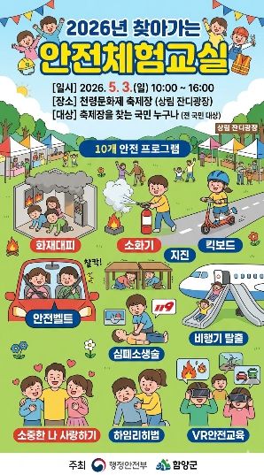 이번 체험 교실은 축제장을 찾는 군민과 관광객에게 생활 속 안전의 중요성을 알리고, 위기 상황 대응 능력을 높이기 위해 마련됐다. 행정안전부와 함양군이 공동 주최하고, 행정안전부 어린이 안전교육 전문기관이 참여해 체험 중심의 안전교육을 진행한다.
