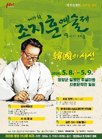 한방통신사 신유철기자 기자 | 영양군은 우리나라를 대표하는 청록파 시인이자 《지조론》의 저자인 조지훈 선생의 문학정신을 기리고자 오는 5월 8일부터 9일까지 2일간 영양군 일월면 주실마을 일원에서 '제19회 조지훈 예술제'를 개최한다.