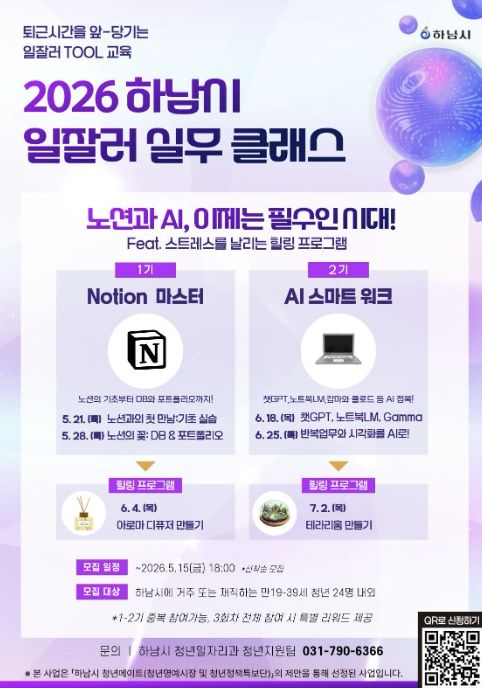 한방통신사 신유철기자 기자 | 하남시는 관내 청년들이 현장에서 바로 활용할 수 있는 실무 역량을 키우고 또래 청년 간 교류 기회를 확대하기 위해 오는 5월부터 ‘2026년 하남시 일잘러 실무클래스’를 운영하고 1기와 2기 참여자를 모집한다고 밝혔다.