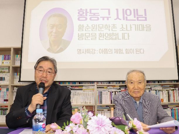 한방통신사 신유철기자 기자 | 황순원 작가의 장남인 황동규(1938~) 시인이 지난 23일 서종면에 위치한 황순원문학촌 소나기마을(촌장 김종회)에서 열린 ‘2026 소나기마을 문학교실’에서 ‘아픔의 체험, 힘이 된다’를 주제로 특별 강연을 진행했다.