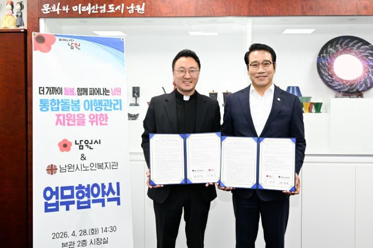 시는 4월 28일 시청 시장실에서 남원시노인복지관과 ‘통합돌봄 이행관리 지원을 위한 업무협약’을 체결했다.