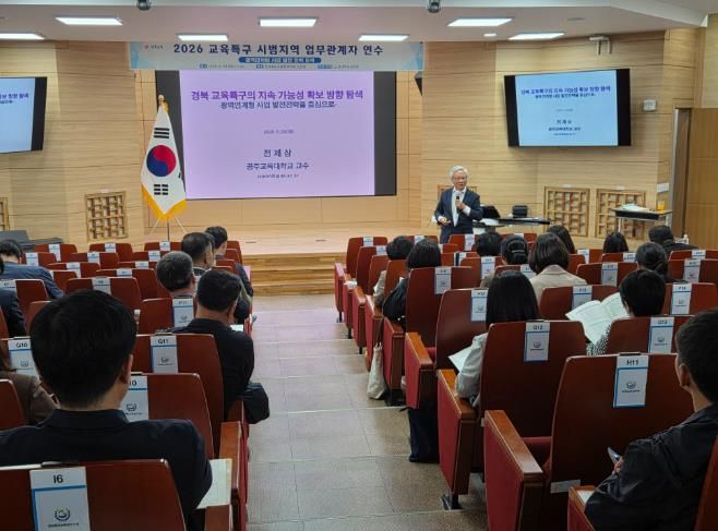 한방통신사 신유철기자 기자 | 경북교육청은 28일 구미시에 있는 경상북도교육청연수원 소강당에서 도내 15개 교육특구 시범 지역의 교육지원청과 지자체 관계자 80여 명이 참석한 가운데 ‘2026 교육특구 시범지역 업무 관계자 연수’를 개최했다고 밝혔다.