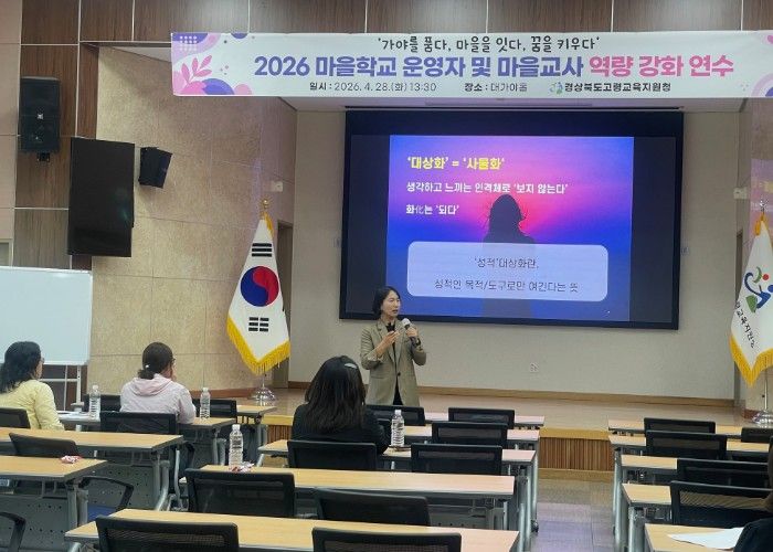 한방통신사 신유철기자 기자 | 경상북도고령교육지원청은 4월 28일 오후 1시 30분, 고령교육지원청 대가야홀(3F)에서 관내 마을학교 운영자 및 마을교사를 대상으로 ‘2026 고령미래교육지구 마을학교 운영자 및 마을교사 역량강화 연수’를 개최했다.