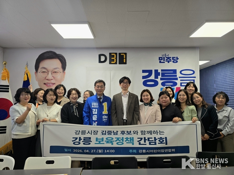 [2026-04-27] 김중남 강릉시장 후보는 27일 강릉시어린이집연합회와 간담회를 갖고, 현장의 생생한 목소리를 바탕으로 한 ‘아이 키우기 좋은 도시 강릉’ 조성을 위한 보육 정책 논의를 진행했다.