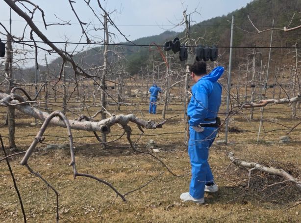 점검 대상은 관내 사과·배 과수원 및 묘목장 404농가, 305ha 규모로, 군은 주 2회 현장 예찰을 실시하며 병해충 발생 여부를 집중 점검하고 있다.