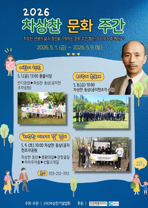 (사)차상찬기념사업회 관계자는 “이번 문화 주간이 차상찬 선생의 정신을 시민과 함께 기억하는 계기가 되길 바란다”며 “어린이와 시민이 함께 참여하는 문화행사로 자리잡길 기대한다”고 말했다.