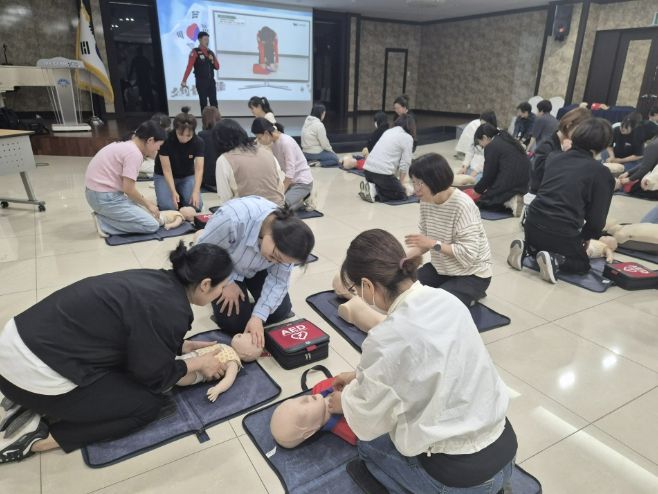 이번 교육은 ‘어린이 안전관리에 관한 법률’에 따른 법정 의무교육으로, 응급 상황 발생 시 보육교직원의 초동 대응 능력을 강화하기 위해 총 7회차에 걸쳐 체계적으로 진행됐다. 교육 과정은 영유아 대상 심폐소생술(CPR), 자동심장충격기(AED) 사용법, 기도 폐쇄 시 대처 방법인 하임리히법 등 이론과 개별 실습을 병행해 현장 활용도를 높였다.