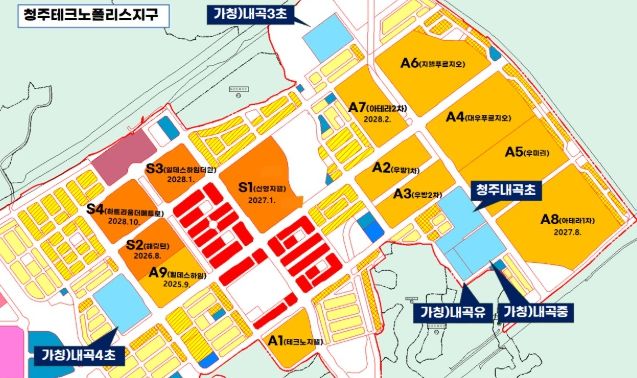 청주테크노폴리스에는 2019년 청주내곡초 개교를 시작으로 2027년 내곡3초등학교(가칭), 2028년 내곡유치원(가칭), 2029년 내곡중학교(가칭), 2030년 내곡4초등학교(가칭)가 순차적으로 개교해 학교 설립이 마무리될 전망이다.