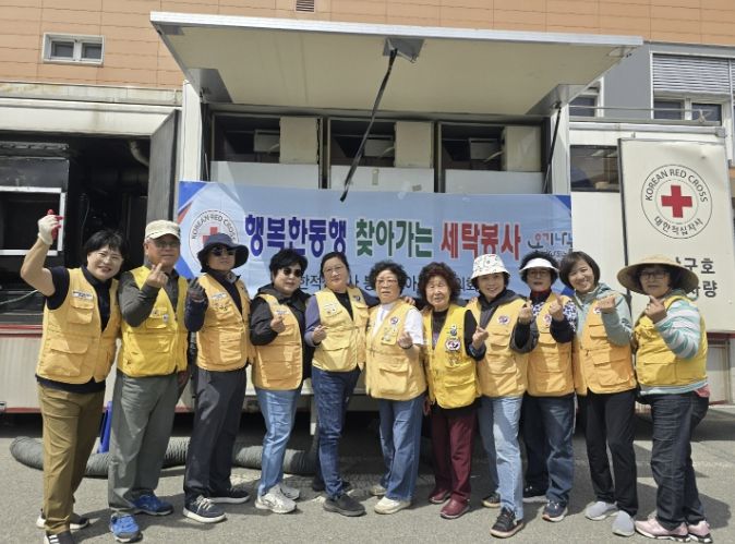 이날 봉사는 대한적십자사 충남지사의 대형 이동식 세탁차량을 활용해 진행됐으며, 봉사회원 20여 명이 참여했다. 이들은 60세대의 이불을 수거해 세탁·건조 후 각 가정에 전달해 큰 호응을 얻었다.