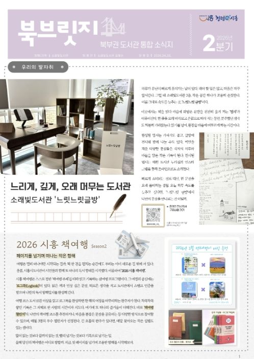 한방통신사 신유철기자 기자 | 시흥시 소래빛도서관은 북부권 공공ㆍ작은도서관의 다양한 소식을 한눈에 전하는 분기별 소식지 ‘북브릿지(북부릿지)’ 2026년 2분기호를 발행했다.