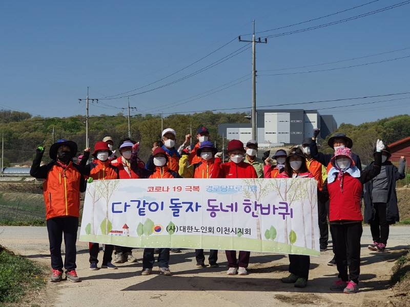 사)대한노인회 이천시지회(지회장 원종성)는 코로나-19의 장기화로 경로당운영이 재개되지 않은 상황에서 사회활동의 단절과 운동 부족현상으로 무기력감, 우울감, 불안감을 호소하는 어르신들에게 심리적인 안정을 위한 맞춤형 걷기 프로그램「다 같이 돌자 동네 한바퀴」를 계획하여 심신이 지친 어르신들께 생활 속 활력을 불어넣고 있다.