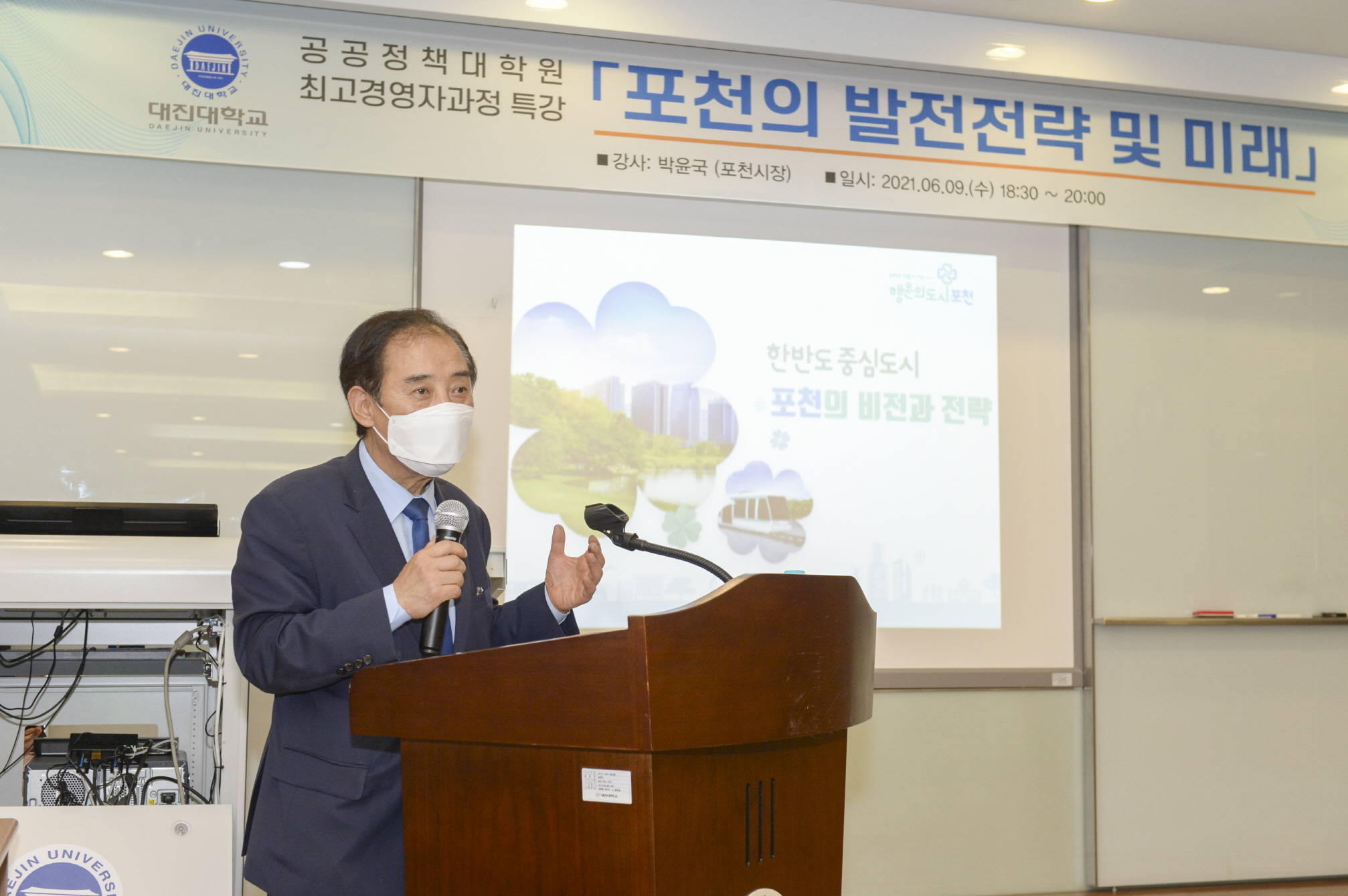 대진대학교의 초청으로 마련된 강연에서 박윤국 시장은 한반도 중심도시 포천의 비전과 전략이라는 주제로 약 두 시간 동안 포천의 청사진을 밝혔다.