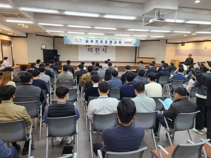 이천시(시장 김경희)는 실질적이고 실효성 있는 직무교육을 통해 담당 공무원의 전문성을 강화시켜 민원인에 대한 대민서비스 향상에 이바지하고자 건축업무 담당 공무원에 대한 실무자 교육을 실시했다. 특히, 이번 교육은 김경희 이천시장의“실질적이고 실효성 있는 직무교육을 부서별 소그룹형식으로 실시하되 직무에 꼭 필요하고 도움이 되는 교육을 실시하라”는 당부에 부합하는 교육이었다.