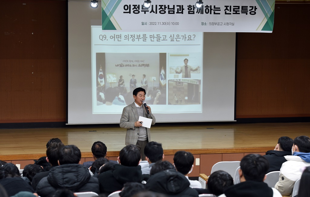 아울러, 김 시장은 공무원 퇴직 후 한 번의 낙선을 거쳐 의정부시장에 취임하기까지 과정을 학생들에게 들려주면서 학창시절과 공직생활을 보낸 의정부시에 대한 남다른 애정을 드러냈으며, 취임 전 작가와 유튜버로 활동하면서 젊은 세대와 소통하기 위해 노력했던 사례들도 소개했다. 특히, 김 시장은 “전통적이고 수동적인 방식만으로는 시민들과 충분히 소통할 수 없다”며, “빅데이터, 반도체, 인공지능, 사물인터넷 등 첨단 기술이 세계를 선도하는 상황에서 젊은 청년들의 니즈를 정확히 파악하기 위해 시민들과의 소통 채널을 다양화하겠다”고 강조했다.
