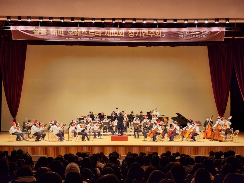 강릉 솔올중학교(교장 방용남)는 20일(화) 오전 11시, 강릉원주대학교 해람문화관에서 제10회 솔올해피오케스트라 정기연주회를 개최했다.